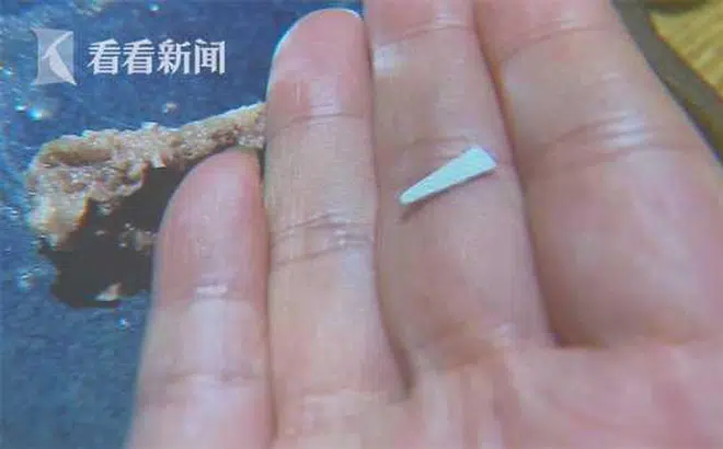 Cụ thể là khi con gái bà Quý đang ăn một miếng thịt bò, cô bé không khỏi bất ngờ khi phát hiện dị vật bên trong. Gia đình bà cho rằng đó chỉ là xương.