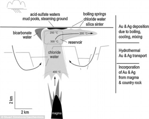 Stuart Simmons, một nhà địa chất tại Đại học Utah và các đồng nghiệp của ông tại Đại học Auckland, New Zealand cho biết: "Tổng lượng vàng và bạc trong các hồ nước này có thể lên tới hàng chục ngàn ounce vàng và hàng trăm ngàn ounce bạc (1 ounce = 0.833 lượng vàng). Để khai thác được những kim loại quý, cần phải phát triển các công nghệ mới để phân tách vàng ra khỏi nước mà không làm ảnh hưởng tới việc sản xuất năng lượng địa nhiệt”.