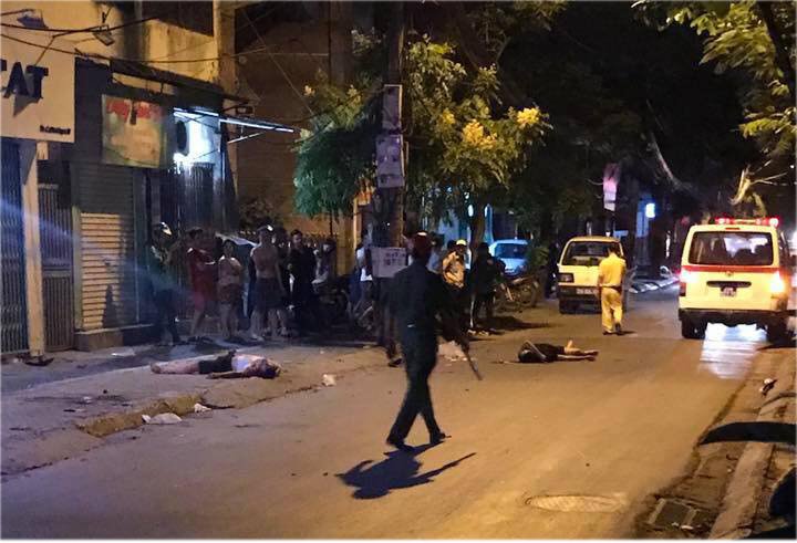 Vào thời điểm trên, người dân phát hiện 2 nam thanh niên nằm trước số nhà 71 phố Trung Kính với vết máu chảy nhiều từ vùng đầu. Một người nằm trên vỉa hè và một người ở dưới lòng đường, cách chiếc xe máy mang BSK 29T1-771.59 khoảng hơn chục mét.