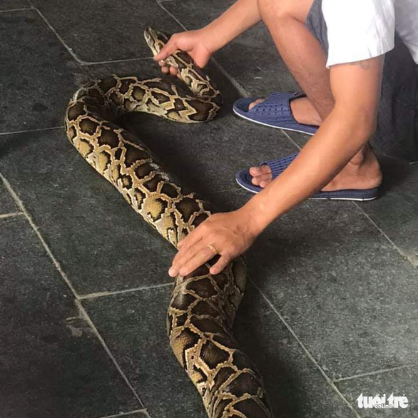 Con trăn lúc được người dân bắt về nhà - Ảnh: UBND phường Nại Hiên Đông/ TTO |