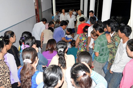 Hàng xóm đến chia buồn với gia đình nạn nhân. Ảnh: Báo Cà Mau |