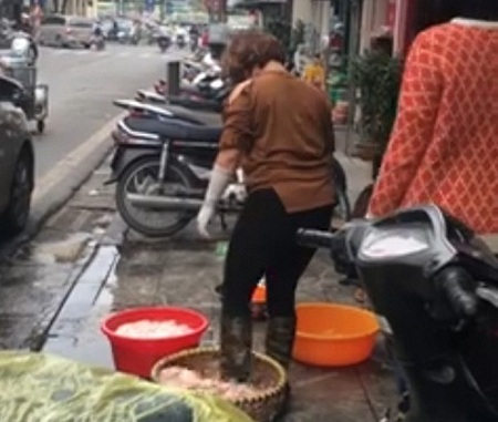 Theo tin tức báo Dân Việt đăng tải, ngày 14/3, trên mạng xã hội xuất hiện clip dài 6 giây ghi lại hình ảnh một người phụ nữ đi ủng dẫm lên lòng lợn để rửa. Quan sát đoạn clip, người phụ nữ liên tục dùng chân khuấy, đảo lòng lợn đựng trong thúng sau đó bước chân ra ngoài. Đoạn clip lan truyền với tốc độ chóng mặt trên mạng xã hội, khiến nhiều người phát hoảng.[mecloud]WVT6UcL053[/mecloud]