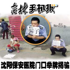 Gần đây, cư dân mạng đang rầm rộ chia sẻ những thông tin và hình ảnh của anh chàng bảo vệ cực hài hước tại cổng một bệnh viện ở Thẩm Dương (Trung Quốc). Trong ảnh là một phụ nữ đang ôm con ngồi ở ven đường cầu xin sự giúp đỡ của mọi người, nhưng cách đó chưa đầy 5m, một anh chàng bảo vệ tại bệnh viện này cũng ngồi y trang vậy, tay giơ tờ giấy ghi “kẻ lừa đảo” kèm theo mũi tên chỉ về phía người phụ nữ. Cảnh tượng này đã khiến người dân tại đây và cư dân mạng cảm thấy rất thích thú.