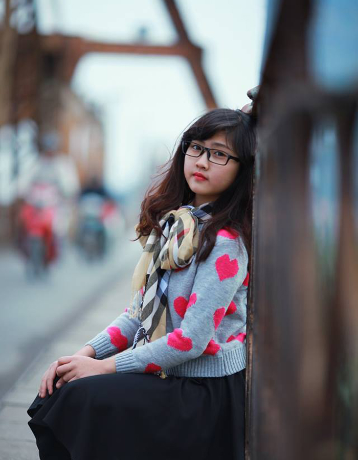 Bộ ảnh của Xuân Hòa được chụp ngẫu hứng trên cầu Long Biên trong vòng 30 phút. Gương mặt dễ thương, trong sáng, bộ ảnh của Xuân Hòa thu hút nhiều người xem.