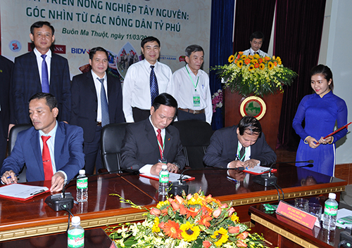 Tại Hội thảo đã diễn ra Lễ ký kết hợp tác liên kết “4 nhà”, Tái cơ cấu Nông nghiệp cho 3 buôn đồng bào Ê Đê và phát động phong trào Nông dân sản xuất – Kinh doanh giỏi. Đại diện Agribank, Phó Tổng Giám đốc Phạm Toàn Vượng tham dự, Giám đốc Agribank Bắc Đắk Lắk Nguyễn Ngọc Tuấn tham gia ký kết hợp tác.