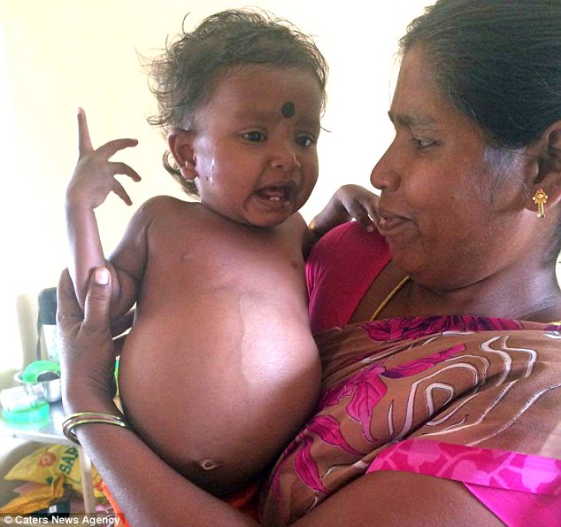 Trước đó, mẹ của em bé này là Sumathi và chồng, anh Raju, đều không hay biết về tình trạng nguy hiểm này. Sau khi thấy con gái không chịu ăn, không tăng cân, bụng phình lớn và bị khó thở, họ mới đưa em đến bệnh viện. Họ cho biết, suốt 15 tháng liền, em bé đã khóc trong nhiều tuần và không thể ăn hoặc uống bất cứ thứ gì.