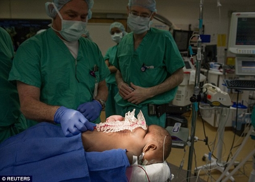 Dominique 10 tháng tuổi đã trải qua 6 tiếng đồng hồ với 5 bác sĩ phẫu thuật tại bệnh viện Nhi đồng Advocate ở Park Ridge Illinois, vào ngày 8/3 vừa qua.