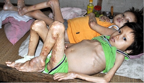 Ngày tới thăm vợ chồng anh chị, cảnh tượng đập vào mắt chúng tôi là 2 đứa con của đang nằm co quắp trên giường, khắp người mụn nhọt, lở loét và cái bụng chướng lên.