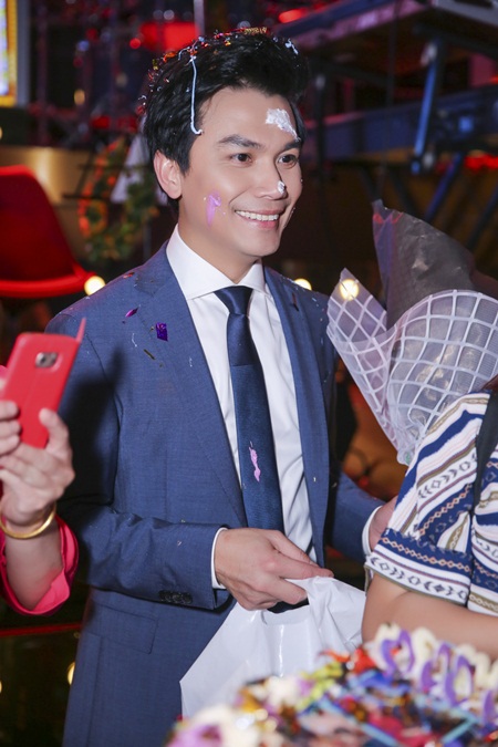 Phi Nhung - Mạnh Quỳnh thân thiết sánh đôi nghe những lời chúc mừng sinh nhật từ người hâm mộ.