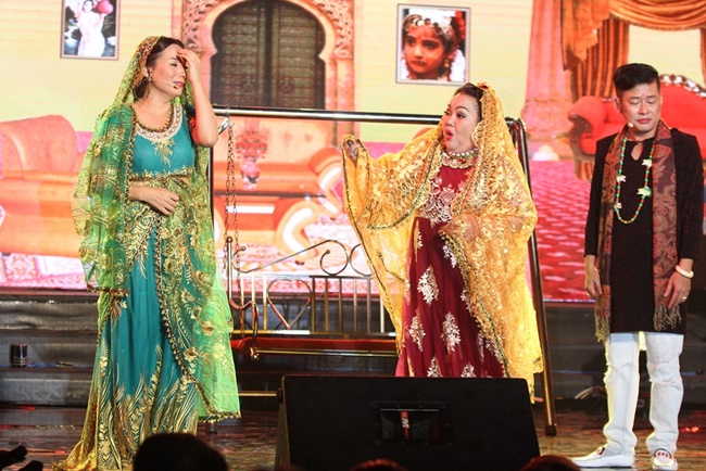 Tiết mục hài kịch do Phi Nhung, nghệ sĩ Tấn Beo và NSND Ngọc Giàu thể hiện với bối cảnh trong bộ phim truyền hình Ấn Độ nổi tiếng "Cô dâu 8 tuổi" đã thành công chọc cười khán giả.