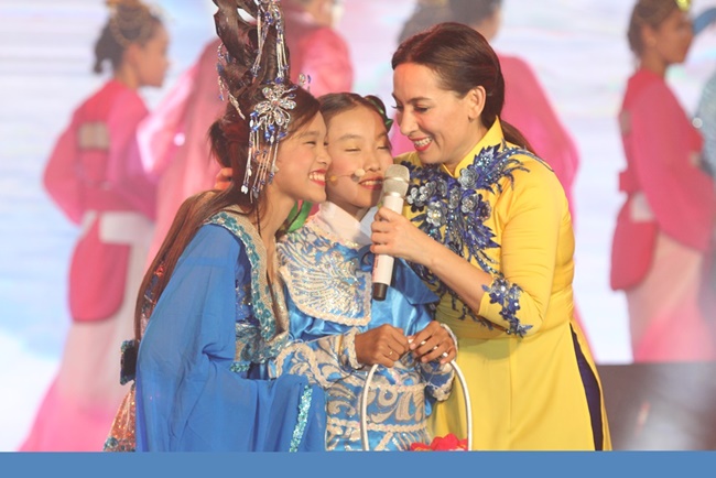 | Phi Nhung cũng đưa cả hai người con gái nuôi của mình lên sân khấu, cùng cô biểu diễn. |