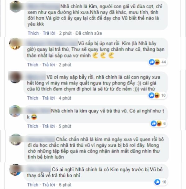 Sau khi Dũng miêu tả về cô nàng tên Kim đã khiến khán giả đoán rằng, Nhã hiện tại chính là cô nàng Kim - người yêu cũ của Vũ khi xưa, nay quay lại để trả thù.