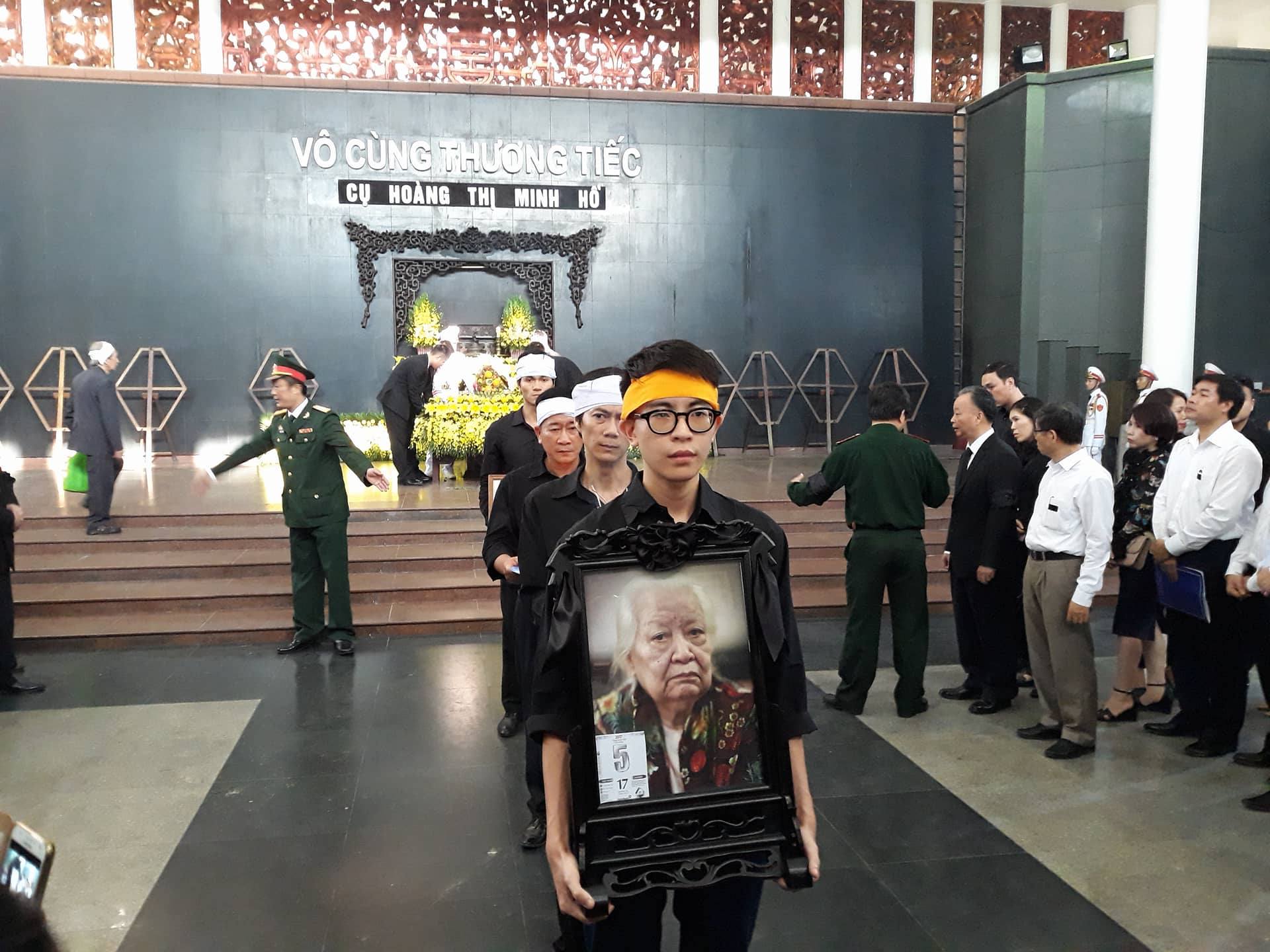 "Gia đình chúng tôi gồm 5 thế hệ vô cùng biết ơn Đảng, Nhà nước, Thành ủy Hà Nội đã tổ chức lễ tang cho mẹ, bà, cụ của chúng tôi. Ý nguyện của mẹ chúng tôi là trước khi ra đi xin chuyển toàn bộ số tiền phúng viếng mẹ tôi đến Mặt trận tổ quốc Việt Nam để ủng hộ đồng bào lũ lụt thiên tai, các cháu nhà nghèo học giỏi để sau này phụng sự tổ quốc", con trai cụ Hoàng Thị Minh Hồ nói.