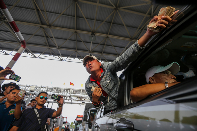 Tài xế trả tiền lẻ tại BOT Cai Lậy. Ảnh: VnExpress |