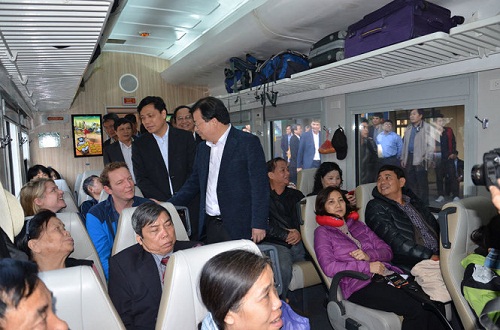 Phó Thủ tướng gặp gỡ hành khách đi tàu. Ảnh: Tuổi trẻ. |