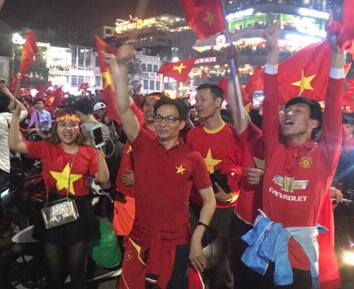Phó Thủ tướng Vũ Đức Đam xuống đường mừng chiến thắng của U23 Việt Nam. Ảnh: VnExpress |