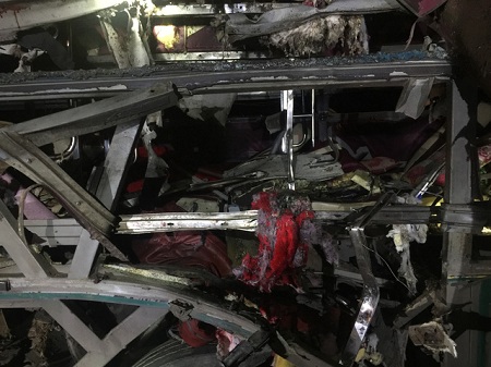 Hiện trường vụ nổ xe khách ở Bắc Ninh. Ảnh: Dân Trí |