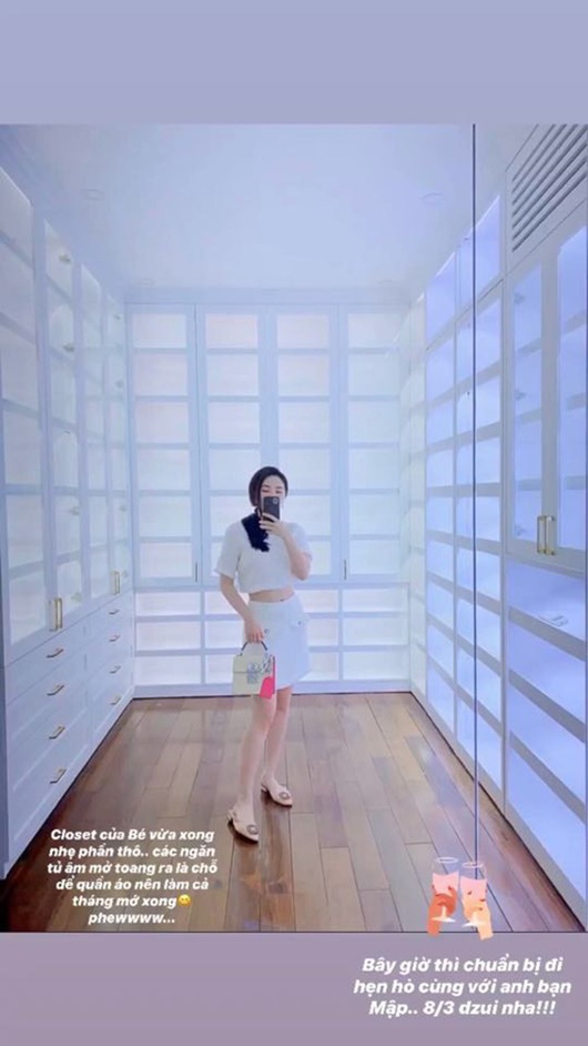 Điều đáng nói là căn phòng này chỉ mới được hoàn thiện 80% mà thôi. Cô nàng chưa hé lộ hình ảnh khi xếp loạt đồ hiệu mà mình sở hữu lên đó.