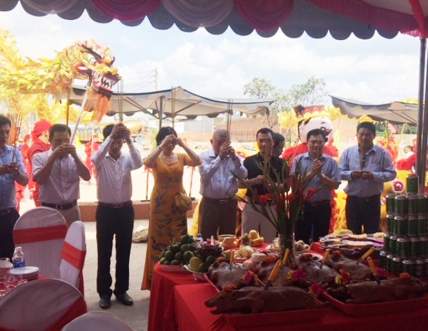 Lãnh đạo công ty thực hiện nghi lễ động thổ tại hai dự án nhà ở thương mại Phú Hồng Khang và Phú Hồng Đạt |