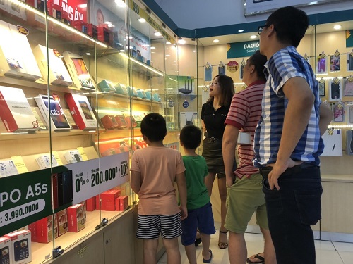 Nhiều bậc phụ huynh dẫn theo con nhỏ tìm mua đồng hồ định vị trẻ em |