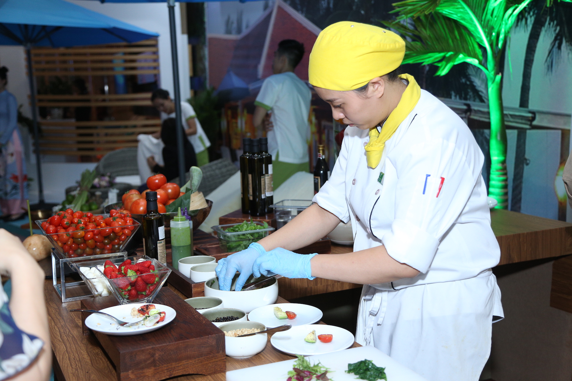 | Khách mời trải nghiệm ẩm thực từ nguyên liệu hữu cơ. |