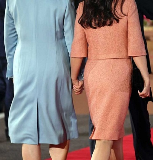 Hai phu nhân đã nắm chặt tay xuất hiện tại buổi tiệc tối. Hai người thường xuyên trò chuyện cùng nhau trong suốt buổi chiêu đãi.