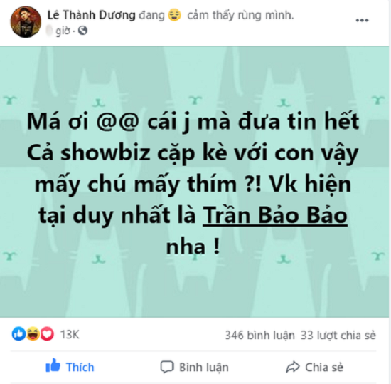Ngược lại với sự im lặng trước đó, Ngô Kiến Huy đã lên tiếng thông qua trang cá nhân của mình. Anh tỏ ra khá bức xúc trước tin đồn hẹn hò của mình: "Cái gì mà đưa tin hết cả showbiz cặp kè với con vậy mấy chú mấy thím?".