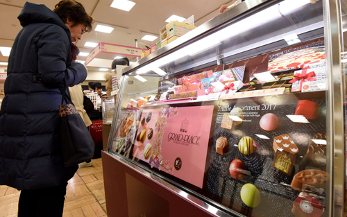 Khách hàng nữ tại một cửa hiệu bánh kẹo ở Tokyo ngày 13/2. Ảnh: Getty |
