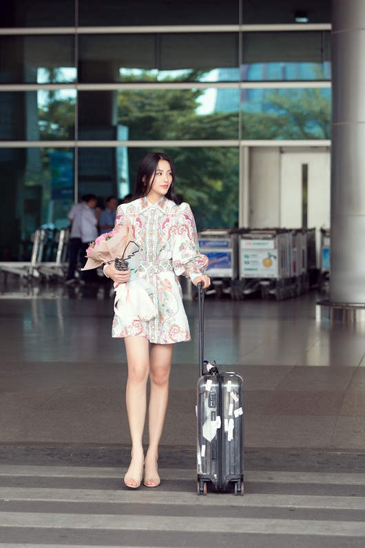 Phương Khánh lặng lẽ đi cùng em trai trong ngày trở về. Được biết, đáng ra Phương Khánh sẽ ở lại Philippines một thời gian để tham gia hoạt động cùng tân Hoa hậu Trái Đất nhưng cô phải trở về Việt Nam sớm do có việc gia đình. |