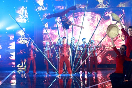 Cũng theo chị, tiết mục cuối thể hiện sự đoàn kết của dân tộc Việt Nam, với hình ảnh những cây tre phía trước và trống đồng phía sau. Phải tìm hiểu sự liên kết giữa 3 tiết mục, tại sao tiết mục đầu tiên sử dụng hình ảnh đôi chân trụ của các cô gái và tiết mục cuối là hình ảnh giữ thăng bằng trên đôi tay của những chàng trai vạm vỡ.