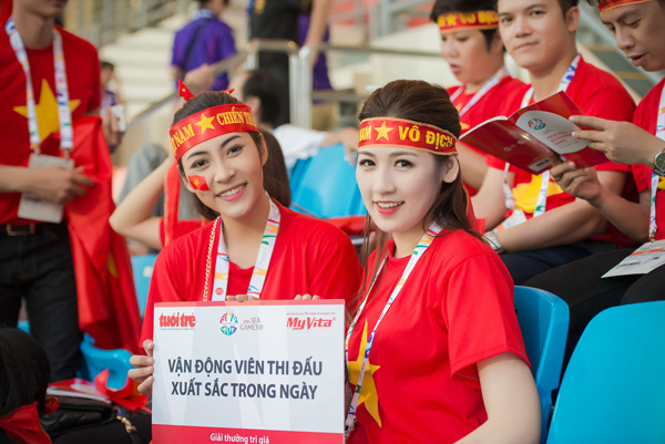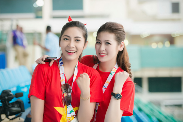 (ĐSPL) - Không chỉ khoe sắc đẹp lộng lẫy của mình, các Đại sứ SEA Games Phương Thanh, Tú Anh, Thu Thảo còn cổ vũ cuồng nhiệt cho thầy trò HLV Miura trong suốt trận đấu với đội tuyển Lào.