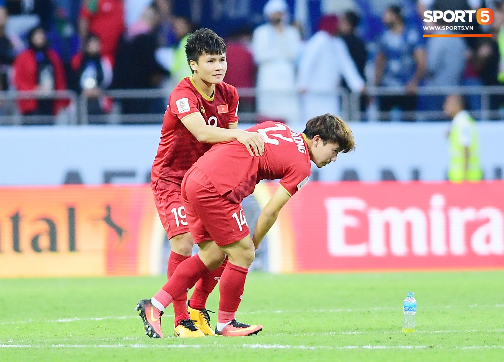 Quang Hải động viên Minh Vương khi thực hiện hỏng pha sút phạt penalty trong loạt sút luân lưu với Jordan tại Asian Cup 2019. Ảnh: Sport 5 |