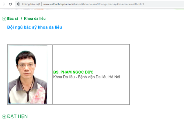 Trước đó, bác sỹ Phạm Ngọc Đức (Khoa Da liễu - Bệnh viện Da liễu Hà Nội) đã phản ánh đến Báo Đời sống và pháp luật, tố cáo PKĐK Việt Hàn có hành vi sử dụng trái phép hình ảnh của ông và nhiều bác sỹ khác, thậm chí là các bác sỹ không hề tồn tại, để quảng cáo và trục lợi trong suốt một thời gian dài. Hành vi vi phạm pháp luật trên của PKĐK Việt Hàn, đã mang đến rất nhiều rắc rối cho cuộc sống và công việc của bác sỹ Đức khi liên tục là các cuộc gọi dò xét của bệnh nhân và ngay cả của các đồng nghiệp.