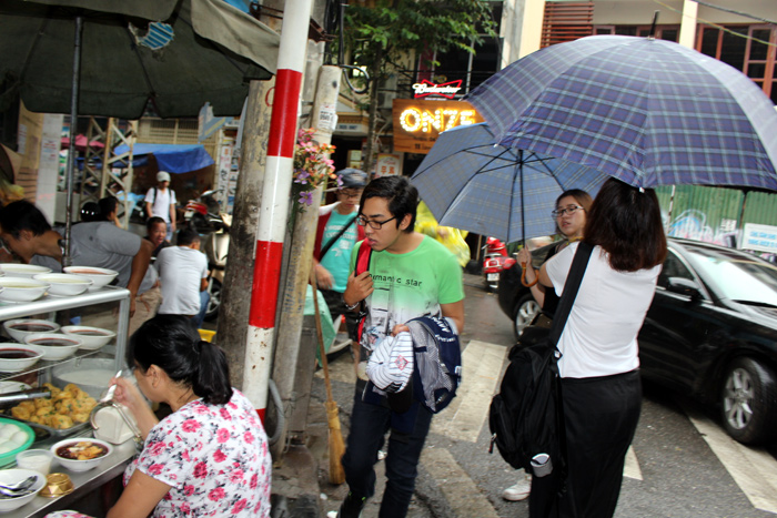 Quán nằm ở vỉa hè ngay cạnh ngã ba phố cổ Lương Ngọc Quyến, Đào Duy Từ của Hà Nội