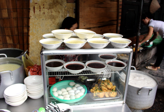 Cháo ở cửa hàng bà Oanh có 3 loại chính: cháo đậu xanh, cháo đậu đen và cháo sườn.