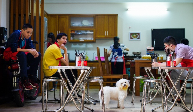 Trong gian bếp ngọt ngào ấy, các thầy cô đã ân cần “cầm tay chỉ việc” cho từng học trò của mình, từ những công việc nhỏ nhất, như nhặt rau, thái thịt, rán đậu, rán trứng, đóng gói đồ ăn và làm quen với các mệnh giá tiền. Vừa hỗ trợ học sinh làm món cá rán, chị Thủy vừa tiết lộ: “Trong suốt hai tháng đầu, chúng tôi dạy các con tất cả các kỹ năng, sau đó, tùy vào sở thích và khả năng của mỗi con để giao “chuyên môn”. Chỉ cần nhìn sự tiến bộ nhích lên từng ngày của các con là chúng tôi cảm thấy hạnh phúc”.