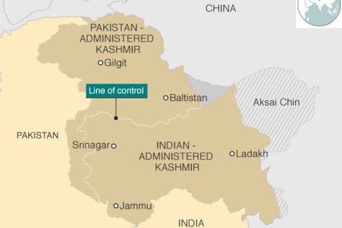 Khu vực Kashmir tranh chấp giữa Pakistan và Ấn Độ. Đồ họa: BBC. |