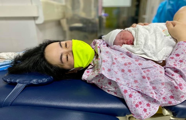 Sau sinh, bé được da kề da. Hiện sức khỏe mẹ và bé đều khoẻ mạnh.