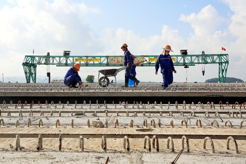 Thi công dầm Super T tại gói thầu XL-05, dự án Đường nối TP Hạ Long với cầu Bạch Đằng. Ảnh: Báo Quảng Ninh |