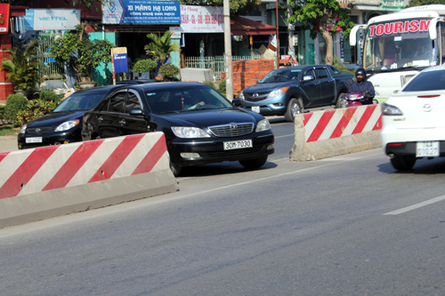 Quãng đường hơn chục cây số, đoạn từ Tuần Châu tới cầu Yên Lập, với hệ thống dải phân cách bằng bê tông, phía trên có hàng rào lưới thép chống chói dài 4 mét, từ lâu đã có đến hàng chục điểm bị tháo tấm chống chói. Theo quan sát của PV ở những khu vực đông dân cư, cứ vài trăm mét lại có một điểm bị tháo dỡ, trong đó có nhiều đoạn dải phân cách mới được đơn vị bảo trì rào lại sau khi bị tháo dỡ.