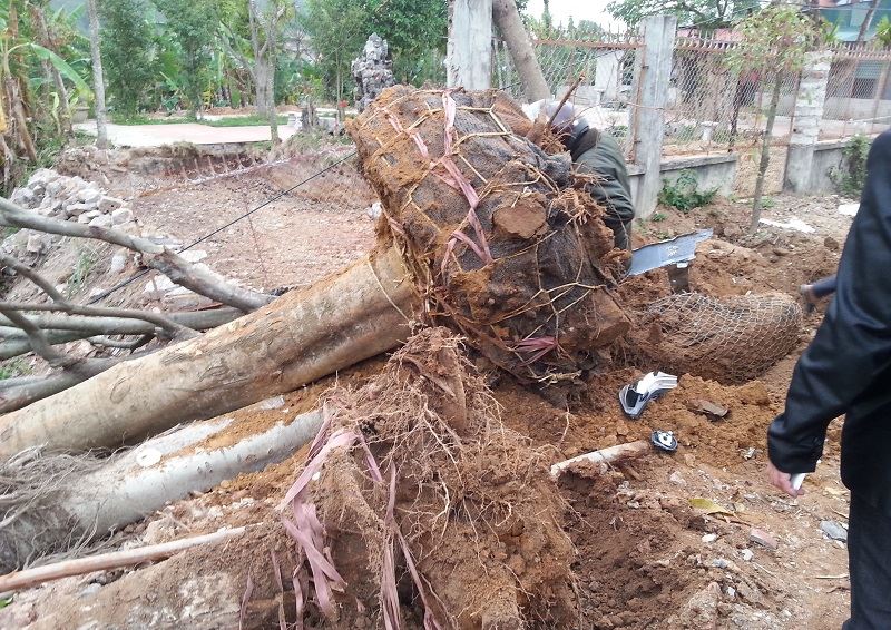 Hai gốc cây lớn ven đường đổ bật gốc do vụ tai nạn. |