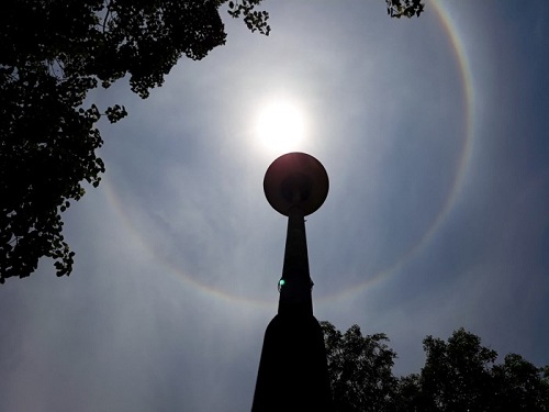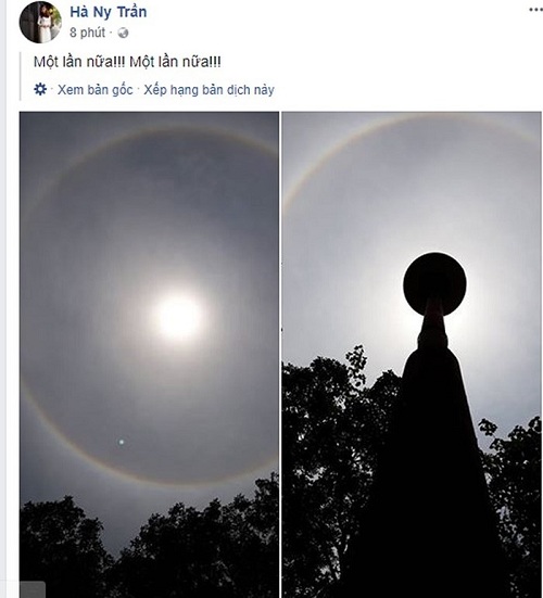 Vào khoảng 10h30p ngày 6/5, người dân Huế đã được dịp chứng kiến một quầng sáng lạ có màu sắc giống cầu vồng tỏa sáng xung quanh mặt trời. Nhiều người đã dùng điện thoại để chụp lại hiện tượng hiếm có này.