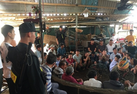 Lực lượng chức năng bất ngờ ập vào "sới gà" bắt quả tang 45 người đang cá cược với nhau bằng tiền mặt.