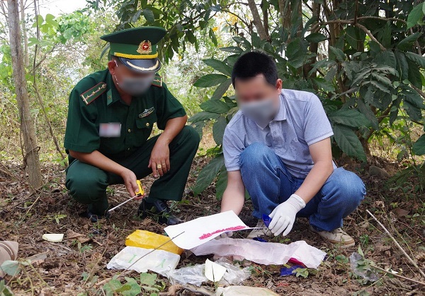 Nhìn thấy lực lượng chức năng, các đối tượng nhanh chóng bỏ lại túi xách chứa ma túy và chạy qua biên giới.