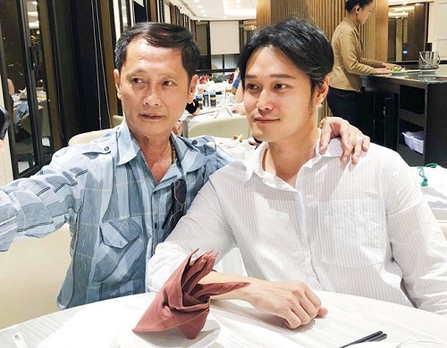 Quang Vinh chụp ảnh cùng cha tại một nhà hàng ở TP.HCM. Ảnh: Facebook |