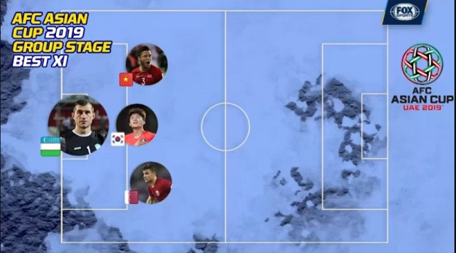 Trung vệ mang áo số 3 được FOX Sports Asia xếp bên cánh trái trong hàng hậu vệ 3 người. Những cái tên còn lại là Bassam Al-Rawi (Qatar) và Kim Min-Jae (Hàn Quốc). Đứng trong khung gỗ là thủ thành Uzbekistan Ignatiy Nesterov. |