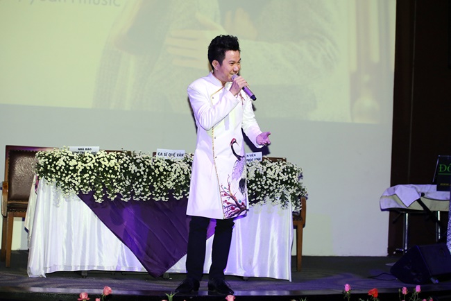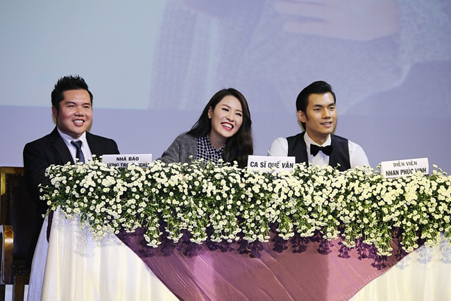 MC Anh Quân đến chúc mừng Quế Vân và là MC buổi họp báo. |
