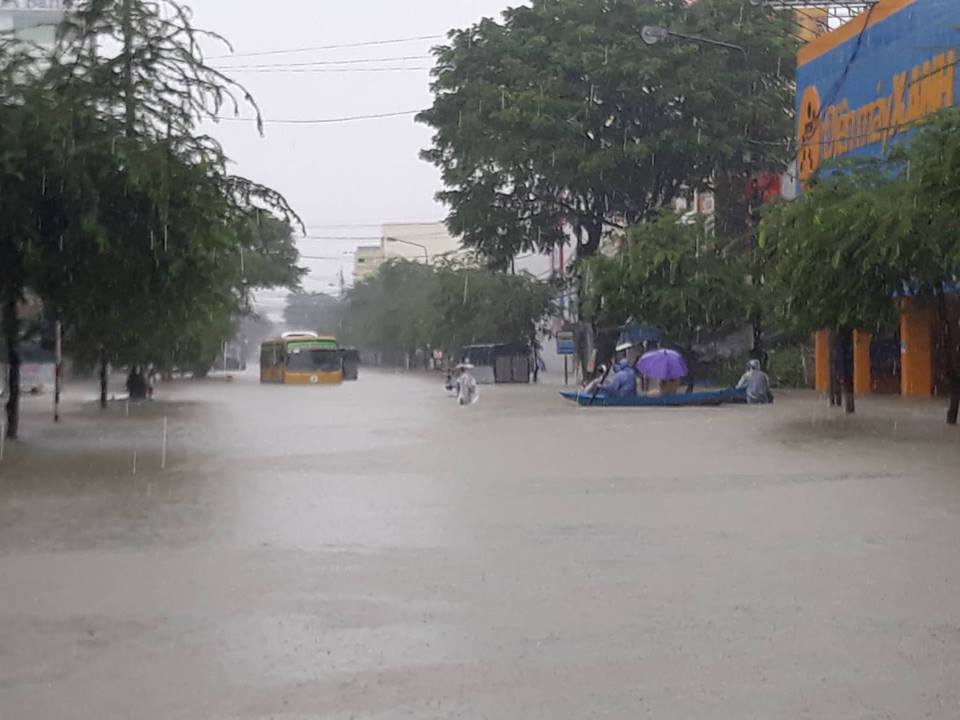 Trong khi đó, tại thành phố Tam Kỳ, mưa lớn cũng khiến nhiều tuyến đường bị ngập sâu. Các tuyến đường bị ngập sâu như đường Phan Châu Trinh ngập 1,2m, các tuyến đường Lam Sơn, Nguyễn Du, Trần Hưng Đạo, Trần Cao Vân.. mực nước ngập sâu trên gần 1m. Khu vực chợ Tam Kỳ ngập sâu gần 2m.