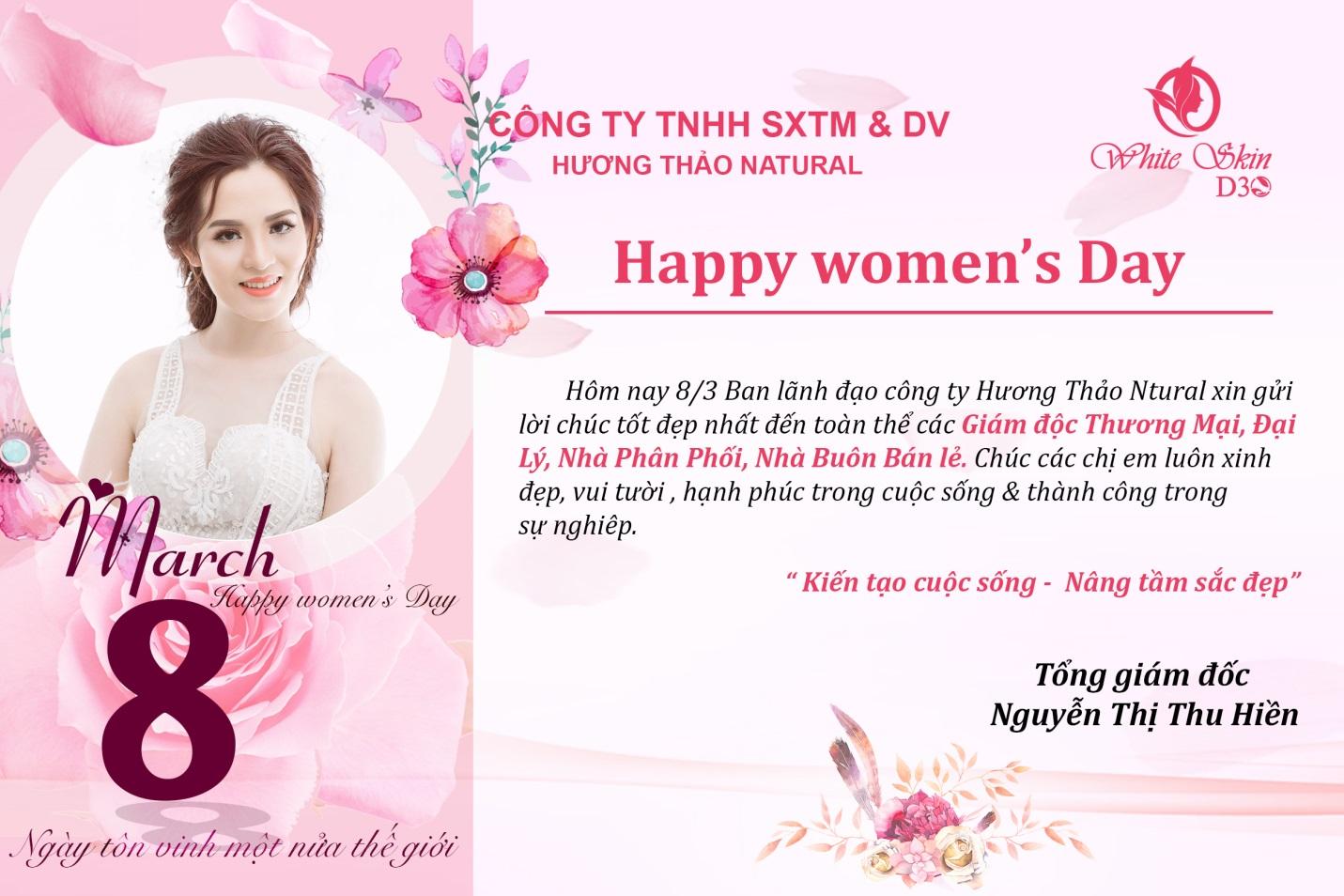 Thay mặt ban lãnh đạo công ty Hương Thảo Natural, xin gửi lời chúc tốt đẹp nhất quý khách hàng và hệ thống kênh phân phối. Chúc các bạn luôn tự tin – xinh đẹp – hạnh phúc và ngày càng thành công hơn . Hương Thảo Natural luôn đồng hành cùng bạn bởi mục đích của chúng tôi không chỉ làm cho phụ nữ Việt ngày càng đẹp lên mà còn tạo cơ hội làm giàu – niềm hạnh phúc khi được tự lực kinh tế bằng chính những sản phẩm họ đang tin dùng.