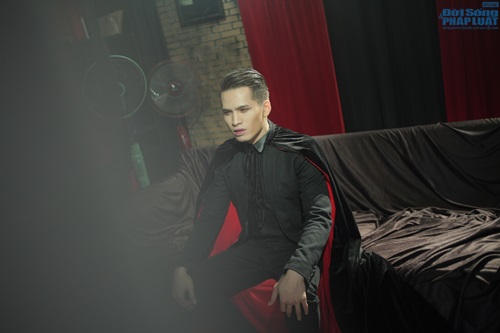 | Quốc Thiên mặc áo choàng 5m để thành ma cà rồng. |